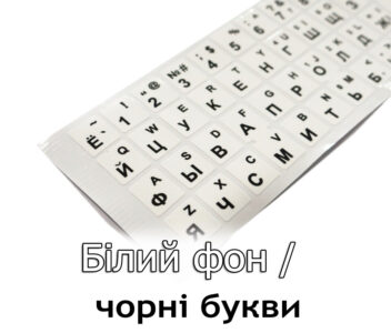 Наклейки на клавиатуру, русский и английский языки. Черные буквы на белом