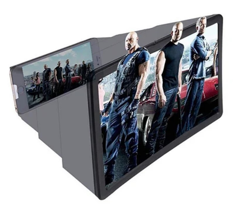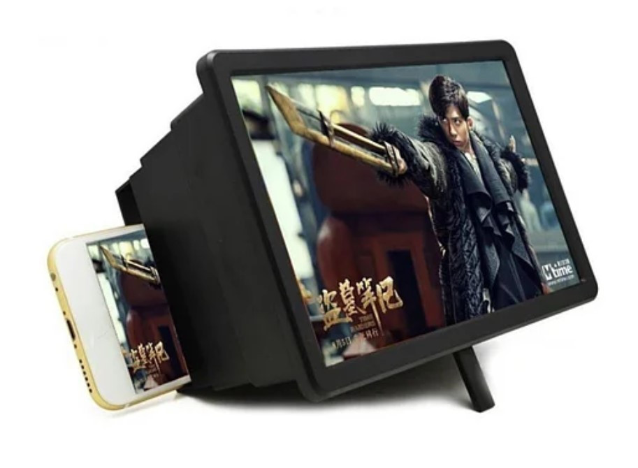 Компактное, удобное и крайне полезное приспособление, позволяющее избежать перенапряжения глаз при просмотре фильмов и чтении мелких текстов с экрана смартфонов. Пользоваться таким прибором совершенно легко и просто: установите смартфон на заднюю платформу ЗD проектора и наслаждайтесь картиной на экране подобной 8 дюймовым устройствам!