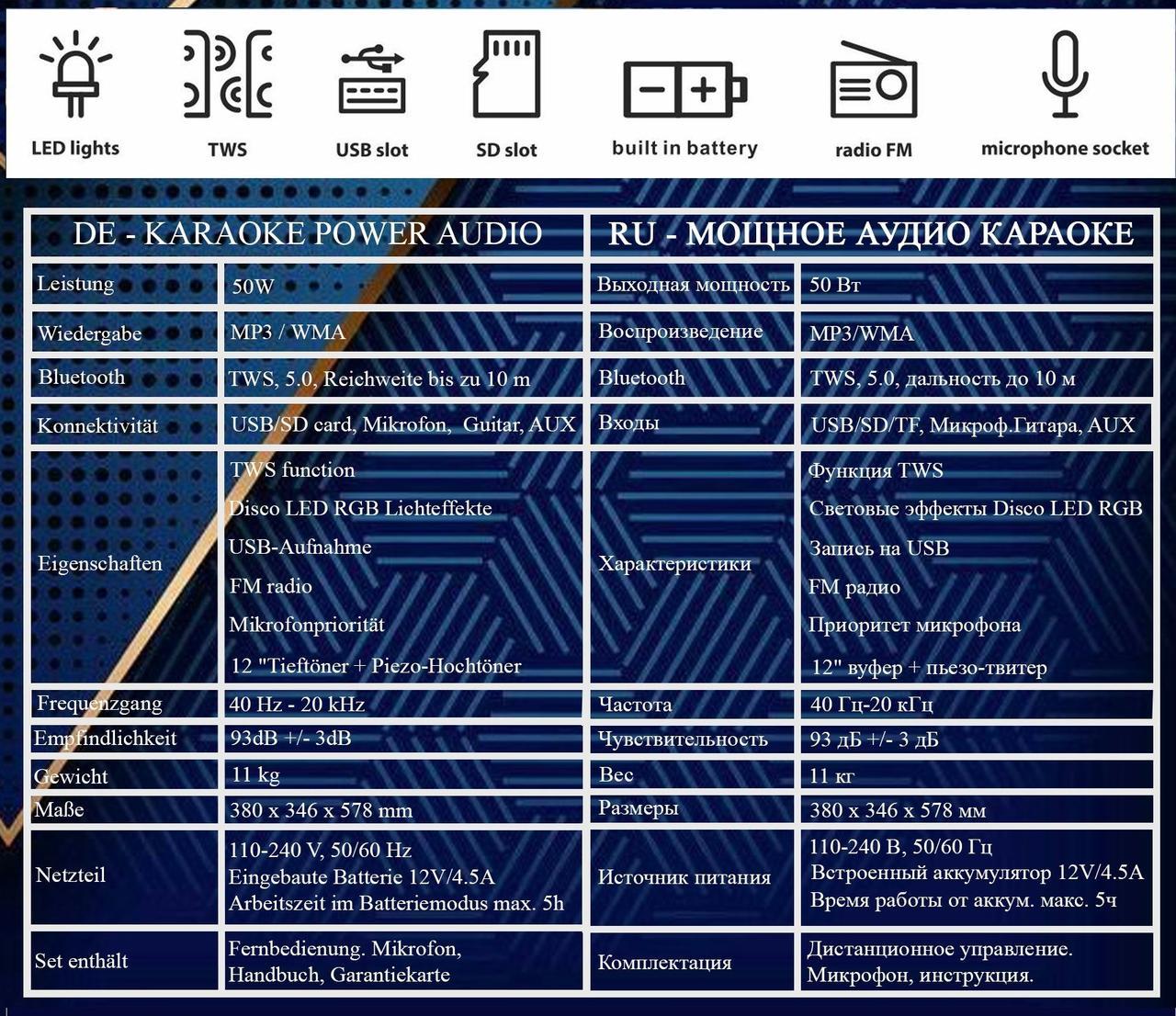 - Входы Входы USB/SD/TF, AUX, микрофон, гитара
