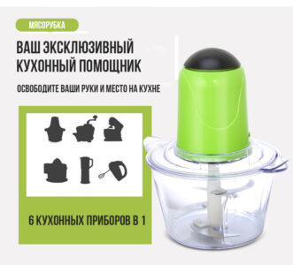 Заменяет 6 приборов: миксер, шейкер, мясорубку, блендер, овощерезку, кофемолку.