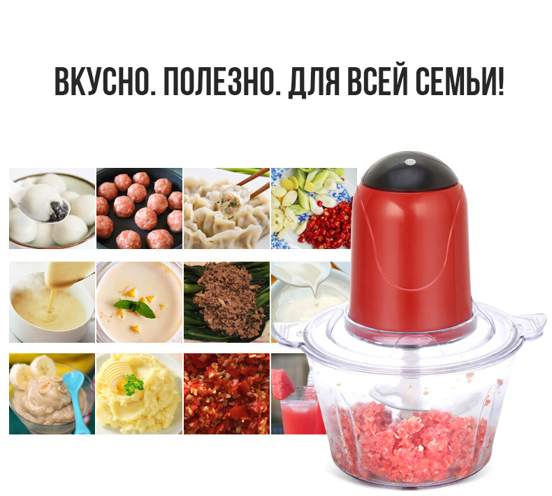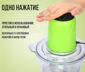 Высокая скорость вращения мотораИзмельчитель с двухъярусным лезвием оснащен мощным мотором, поэтому вы легко и быстро приготовите вкусные и полезные блюда для себя и своей семьи.Электрический переключатель находится на верхней крышке, чтобы размолоть продукты до состояния пюре, нажмите кнопку «Рress» и удерживайте до состояния готовности.Чтобы измельчить продукты до состояния пюре вам понадобится в среднем 20 секунд.
