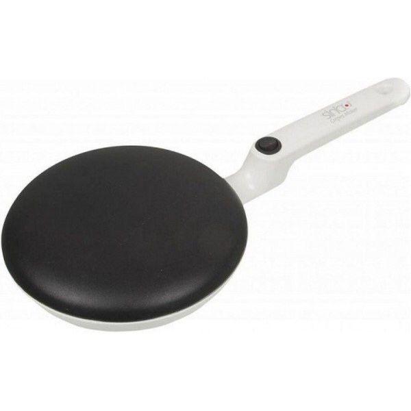 Блинница SINBO SP 5208 используется для приготовления блинов диаметром до 20 см. Работает она от электросети и включается при помощи небольшого переключателя на ручке. Благодаря антипригарному покрытию тесто не пристает к поверхности сковороды. Длинная рукоятка имеет эргономичную форму, поэтому хорошо лежит в руке и не выскальзывает при переносе.