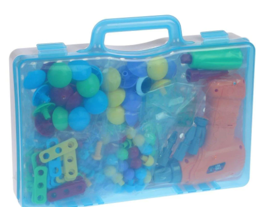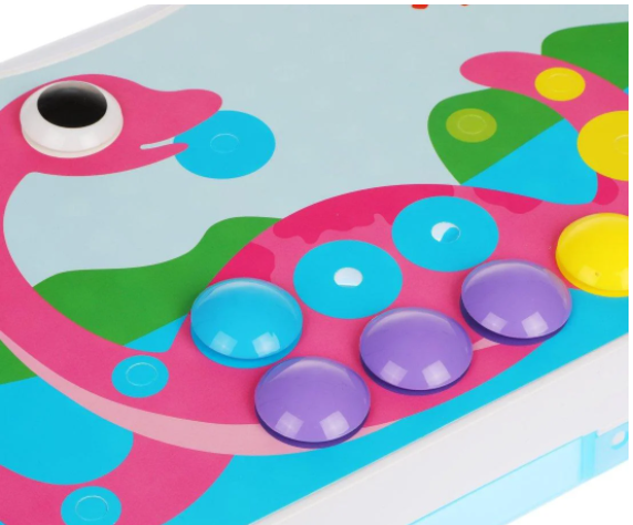 Увлекательный конструктор – скрутка и красочная мозаика – и всё это в одном чемоданчике! В состав набора входят 224 элемента (в том числе электрифицированная дрель), 1 иллюстрированная книжка с примерами работ и 8 красочных карточек с изображениями динозавров. Одна из сторон чемоданчика представляет собой игровое поле с отверстиями, на котором можно выкладывать мозаику и возводить необычные конструкции при помощи дрели. Ребёнок может придумать свои собственные картинки и сооружения или воспользоваться подсказками в книжке. Карточки с динозаврами также предназначены для декорирования элементами мозаики.