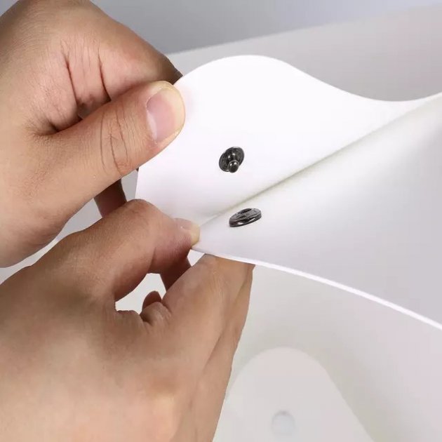 Куб сделан из гибкого пластика что продлевает его срок службы на многие годы. Когда куб не исполькуеться, то его можно сложить и он почти не будет занимать места. Так же в лайтбокс встроенная подсветка что позволит делать более качественные фотографии.Большим плюсом пластикового куба является, то что пластиковые стенки не пропускают свет.