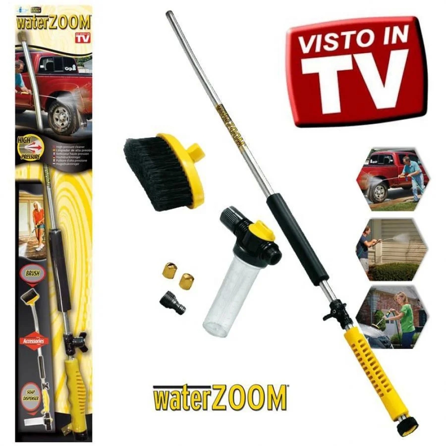 Мини-мойка высокого давления Water Zoom (насадка для садового шланга) — то что Вам необходимо. Мини-мойка высокого давления Water Zoom (насадка для садового шланга) — обновленная версия, с еще более качественных материалов. Фантастическое изобретение, мини мойка высокого давления WATER ZOOM которое превратит любой садовый шланг в легкую, компактную моющую установку. Присоедините Water Zoom к шлангу, включите воду, выберете нужный режим подачи воды и силы напора. И у вас в руках мощная водомойка, которая чистит не хуже мойки с электронасосом.Water Zoom это специальная технология подачи воды под давлением, которое способно создать реактивную струю в простом садовом шланге.Water Zoom изготовлен из ультра-легкого промышленного алюминия, он прослужит вам долгие годы. Вы сможете смыть плесень и грязь с зонтиков, с садовой мебели в мгновение ока.Water Zoom это специальная технология подачи воды под давлением, которое способно создать реактивную струю в простом садовом шланге.Water Zoom изготовлен из ультра-легкого промышленного алюминия, он прослужит вам долгие годы. Вы сможете смыть плесень и грязь с зонтиков, с садовой мебели в мгновение ока.Мини мойка Water Zoom очень проста в использовании. Достаточно всего лишь вкрутить ее в шланг и отрегулировать сопла! Устройство подойдет для любого шланга.С помощью Water Zoom Вы сможете не только буквально вымыть всю наружную грязь, но также можно его можно использовать для полива цветов и других растений.Особенности:подойдет для любого шлангапрост и эффективен в примененииИспользование:1. вкрутите water zoom в шланг2. проверьте поток воды, просто повернув ручку3. чтобы выключить поток, переведите рукоятку в положение ВЫКЛ4. чтобы изменить поток воды, удалите одну форсунку и закрепите другуюКомплектация:прибор water zoom;сопла и форсунки;емкость для мыла;щетка;адаптер для шланга. Мини-мойка высокого давления Water Zoom (насадка для садового шланга) — рекомендуем к покупке. Для заказа просим либо сделать заказ через корзину, либо звонить по телефону, либо писать в Вайбер.