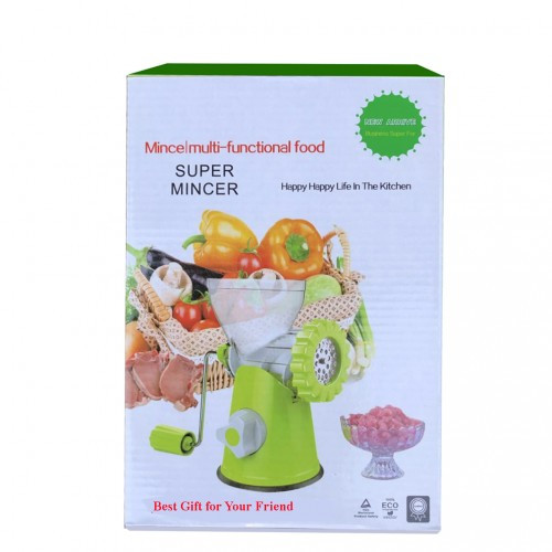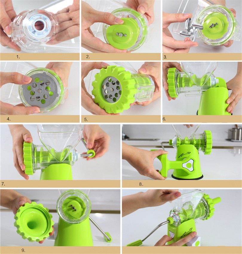 Эта мясорубка является ручным многофункциональным кухонным комбайном, отличающаяся простотой эксплуатации и легко моющийся после использования. Благодаря корпусу из безопасного высококачественного пищевого пластика, ножу и дискам из нержавеющей стали, мясорубка может использоваться для приготовления всех видов мяса, мясных начинок, соусов чили, чесночного пюре, пасты, овощных и сырных блюд, макарон, а также колбасных изделий.