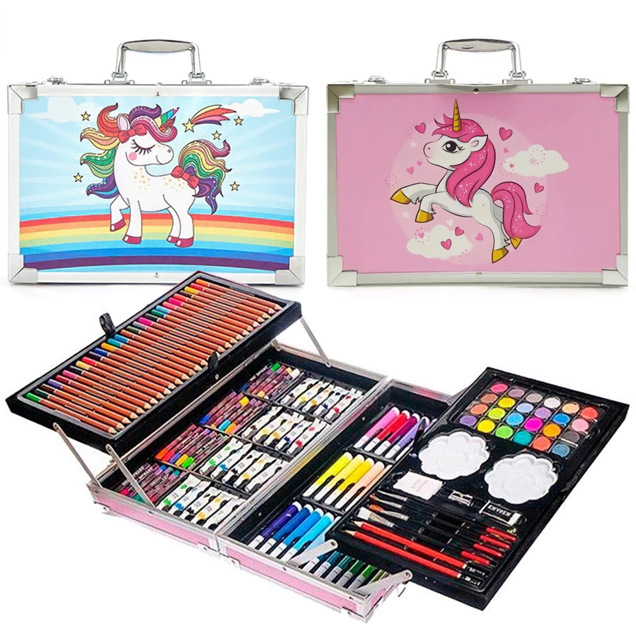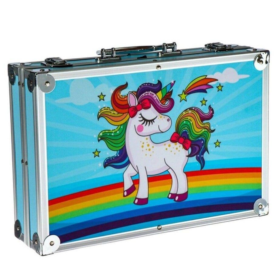 Набор для детского творчества и рисования 145 предметов юный художник в алюминиевом чемодане единорог