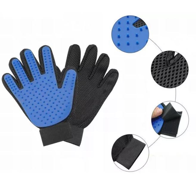 Перчатка Для Вычесывания Шерсти Для Кошек И Собак True Touch Черно-Синяя На Правую Руку (2000000045375). Инструменты Для Груминга — Новинка