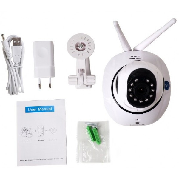 IP-камера оснащена инфракрасной подсветкой, которая позволяет передавать видеоизображение в условии ограниченной освещенности или полной темноте. Подключение к сети интернет осуществляется по радиоканалу Wi-Fi.