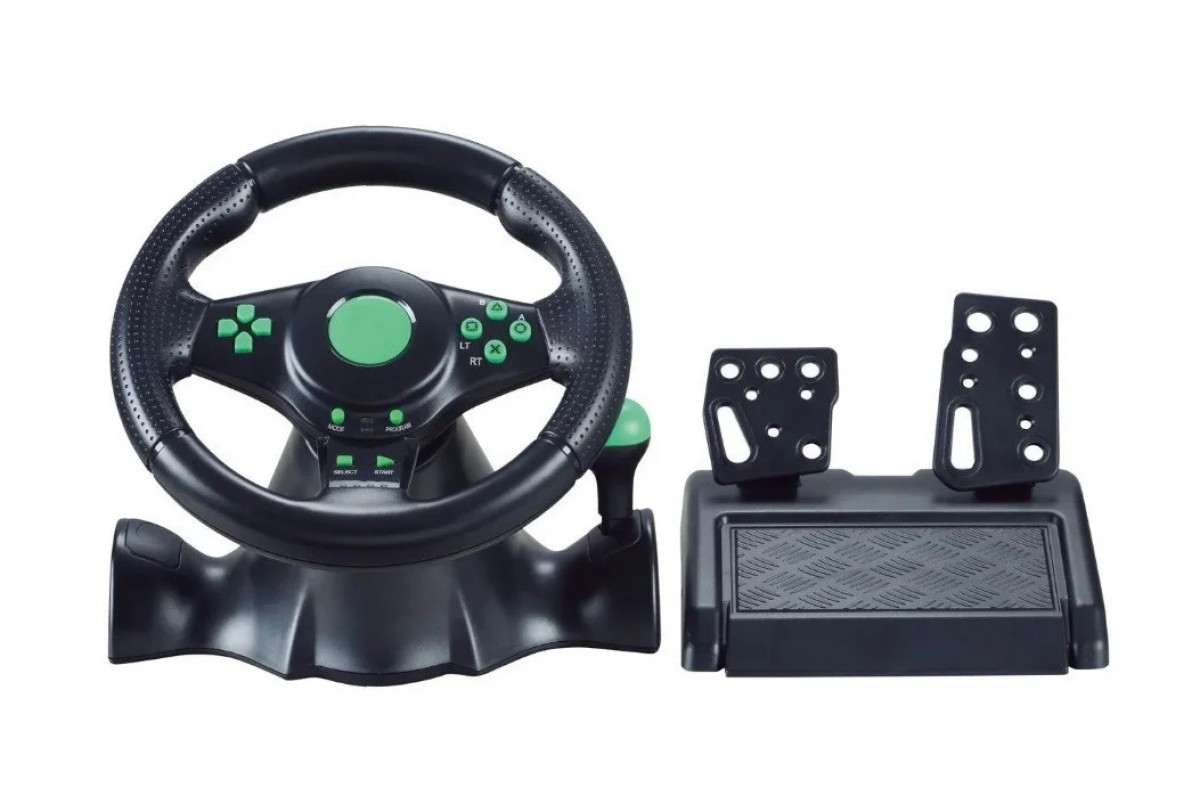 Прочный зажим крепления позволяет легко и надежно закреплять руль на столе. Руль оснащен 2 педалями, 13 кнопками, благодаря чему вы получаете полный контроль над игрой.