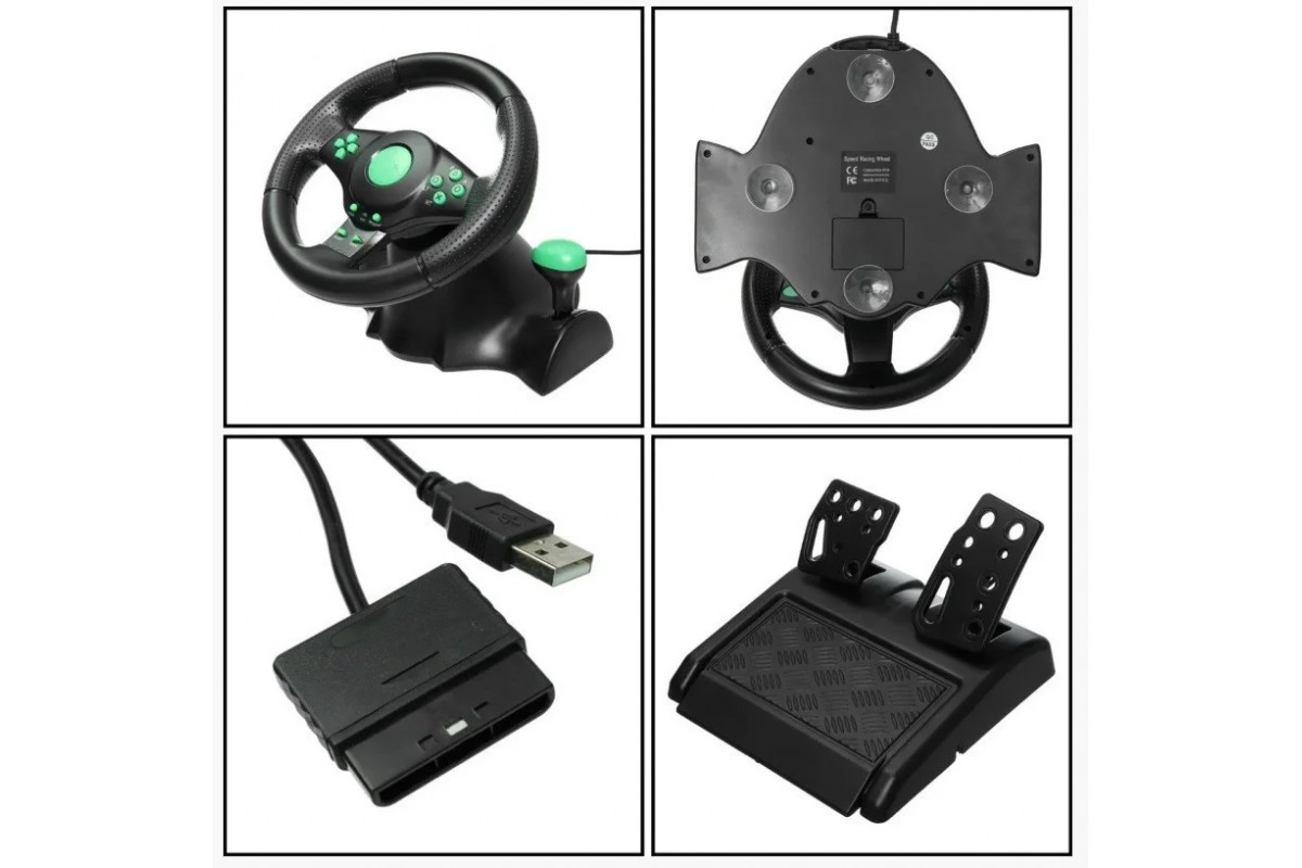 Компактный игровой руль Usb подходит как для Сони плейстейшн так и для компъютера и ноутбука PS2 / PS3 П.К.