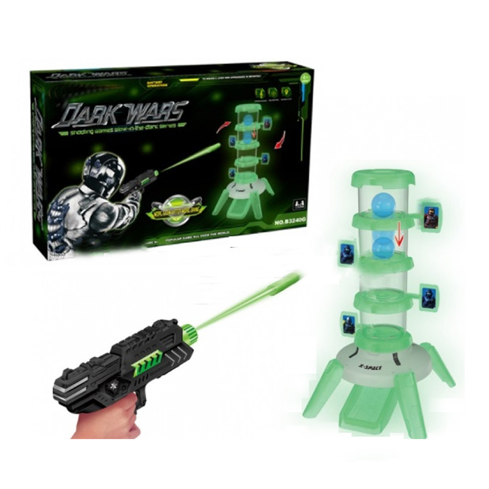 - База и бластер выполнены из безопасного нетоксичного пластика. Работает от 3 батареек тип ААА (не входят в комплект).